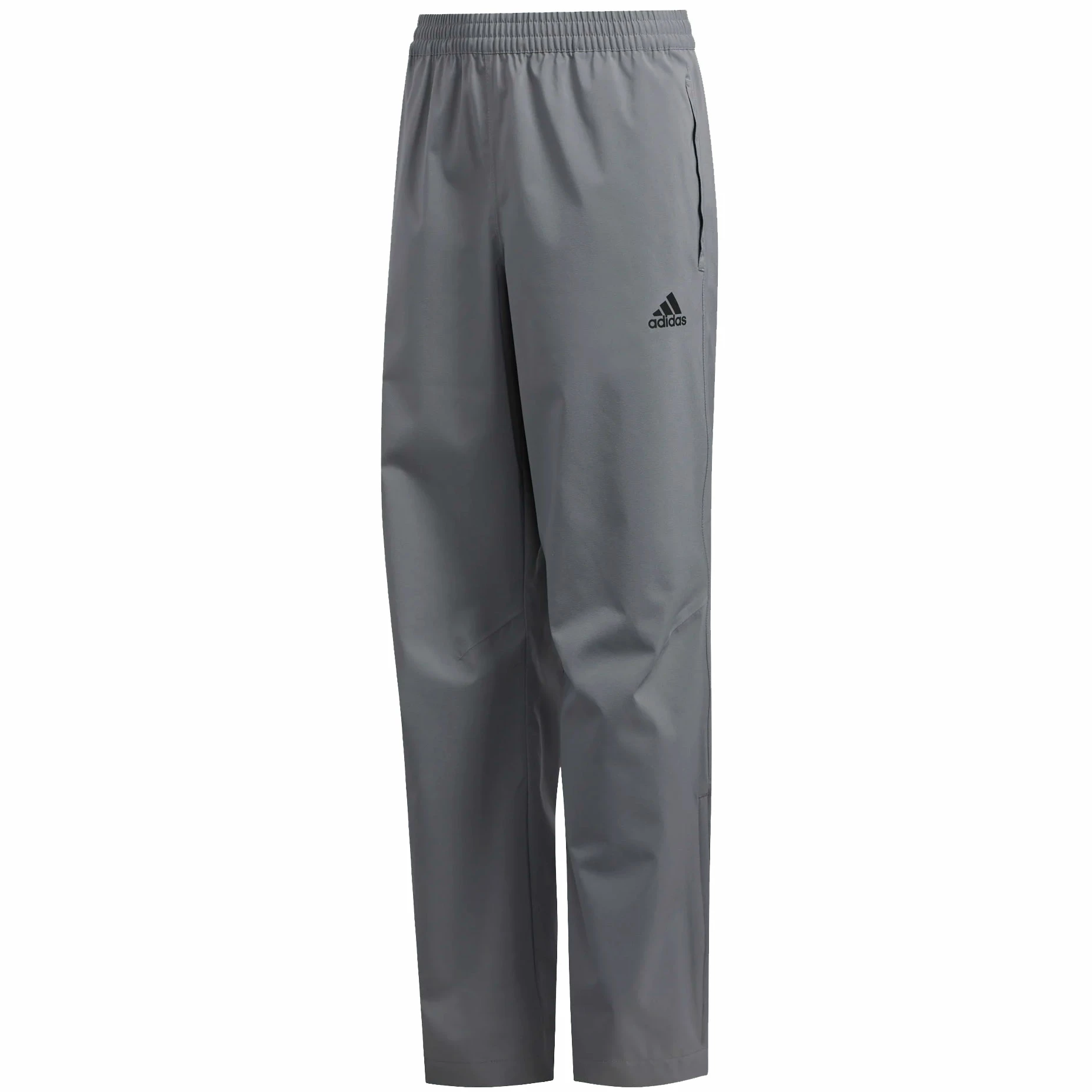 adidas Boys Provisional Waterproof Pant – Grey Three adidas golf has designed the Boys Provisional Waterproof Golf Trousers so that junior golfers are able to be kept warm and dry on the golf course during wet and windy conditions with a pair of golf trousers that can quickly be put on to protect them from light wind and rain.& Designed to be quick and easy to use during a sudden spot of rain on the golf course these tracksuit bottoms are suitable to be pulled on over golf trousers, golf shorts and shoes that are already being worn to keep you cool and dry.& On the waistband of these trousers, adidas golf has included a drawcord which has been paired with an elastic waistband so that a much more secure fit can be achieved when pulling the tracksuit bottoms on while still also allowing for plenty of stretch and flexibility for a great range of movement. Ankle zips have also been added to the leg of these rain trousers so that a more sucre fit can be achieved to avoid rain getting into a player’s trainers or socks while playing.&& Constructed using a combination of polyester and polyurethane golfers can now experience a pair of golf trousers that provide protection thanks to the WIND.RDY technology from adidas golf which allows the material to be water resistance and wind resistance, meaning that it is much easier to remain warm and dry while playing. The bottoms have also been coasted in a water-repellent finish so that any rainwater that lands on the fabric isn’t absorbed and is forced to roll off the edge. Features Regular fit Drawcord on elastic waist Shell: 73% polyester, 27% recycled polyester poplin Lining: 100% polyurethane Pull-on golf pants Wind-resistant, water-repellent WIND.RDY Front pockets and back flap pocket Ankle zips PFC-free water-repellent finish