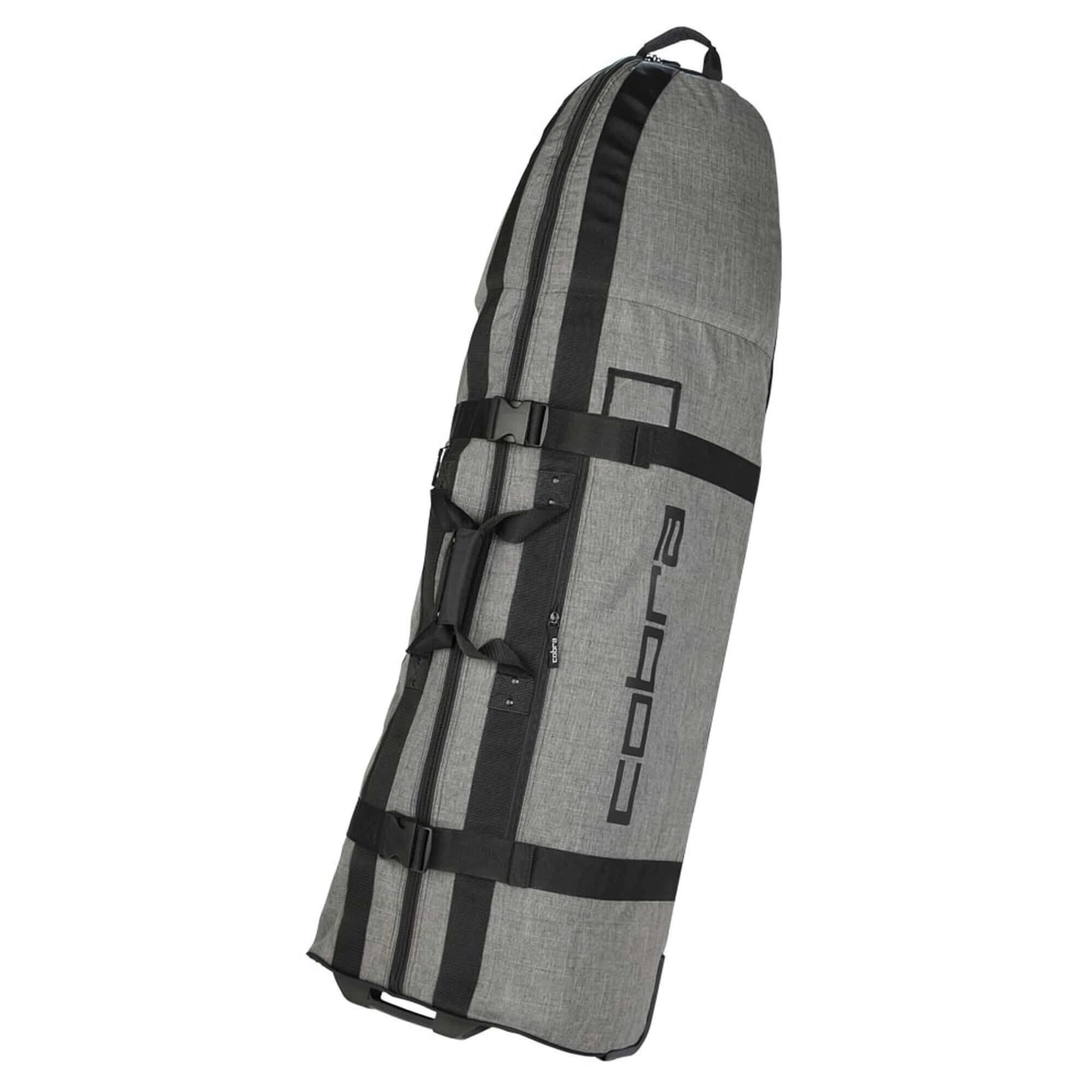 Cobra Crown Rolling Club Bag Travel with your golf equipment safely with the Cobra Crown Rolling Club Bag.& It features a large main compartment with a two-way zip, made from a durable heather material, oversized wheels for easy travel and multiple top and front grab/carry handles. Features: Large main compartment with two-way zip up External pockets for extra storage Multiple top and front grab/carry handles ID Card holder Top and side carry handle Durable heather material with Crown C branding Oversized wheels for easy transition when travelling Specifications: Shell: 100% Polyester Lining: 100% Polyester Size: 17” x 10.5” x 52”