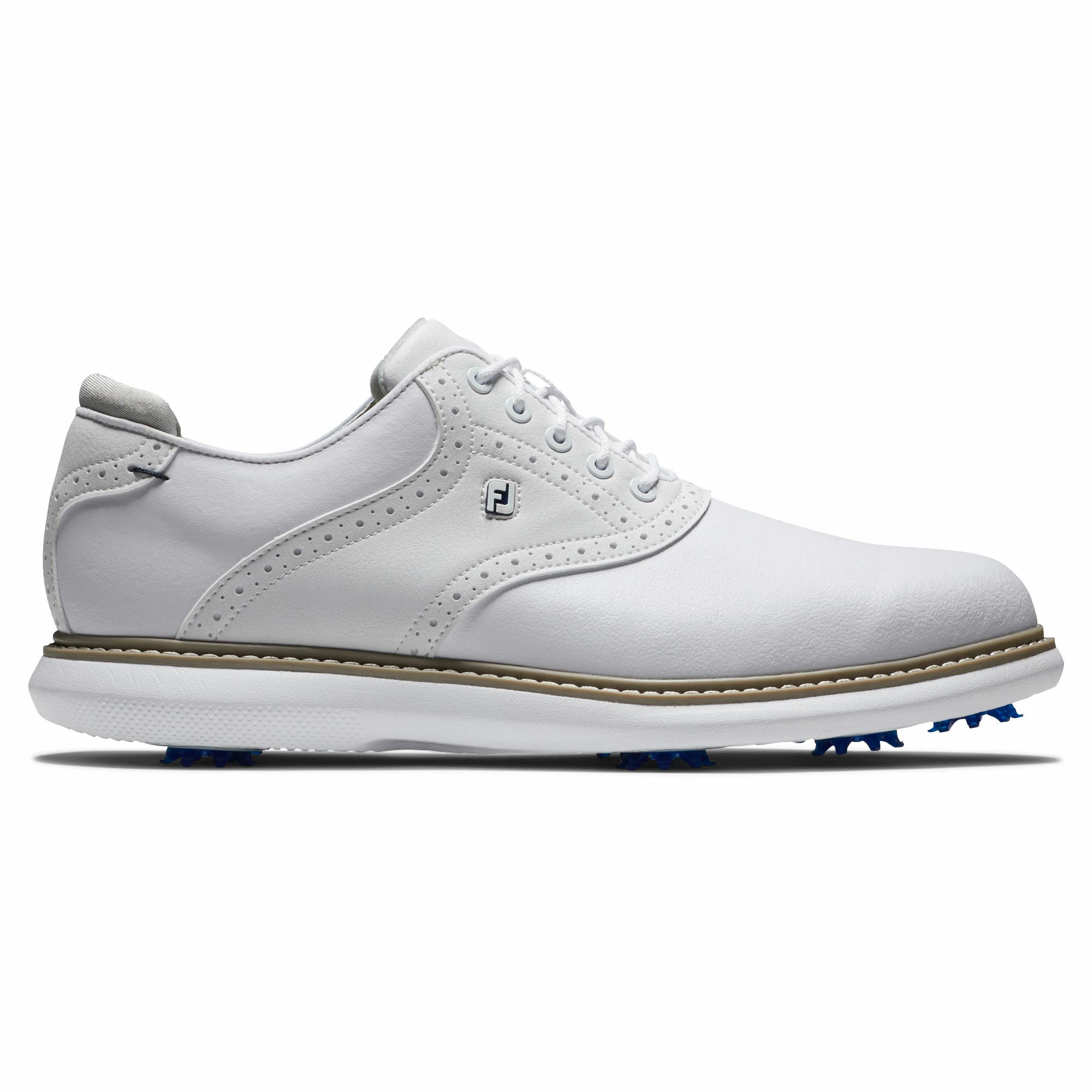 FootJoy Traditions Golf Shoes 2021 -&White The Traditions Golf Shoes 2021 in White by FootJoy offer lightweight comfort combined with extra support and cushioing. An ideal Golf Shoe to get out onto the course in. Features Full grain leather upper Foam midsole Moulded FitBed for underfoot upport and cushioning Pulsar LP cleats by Softspikes