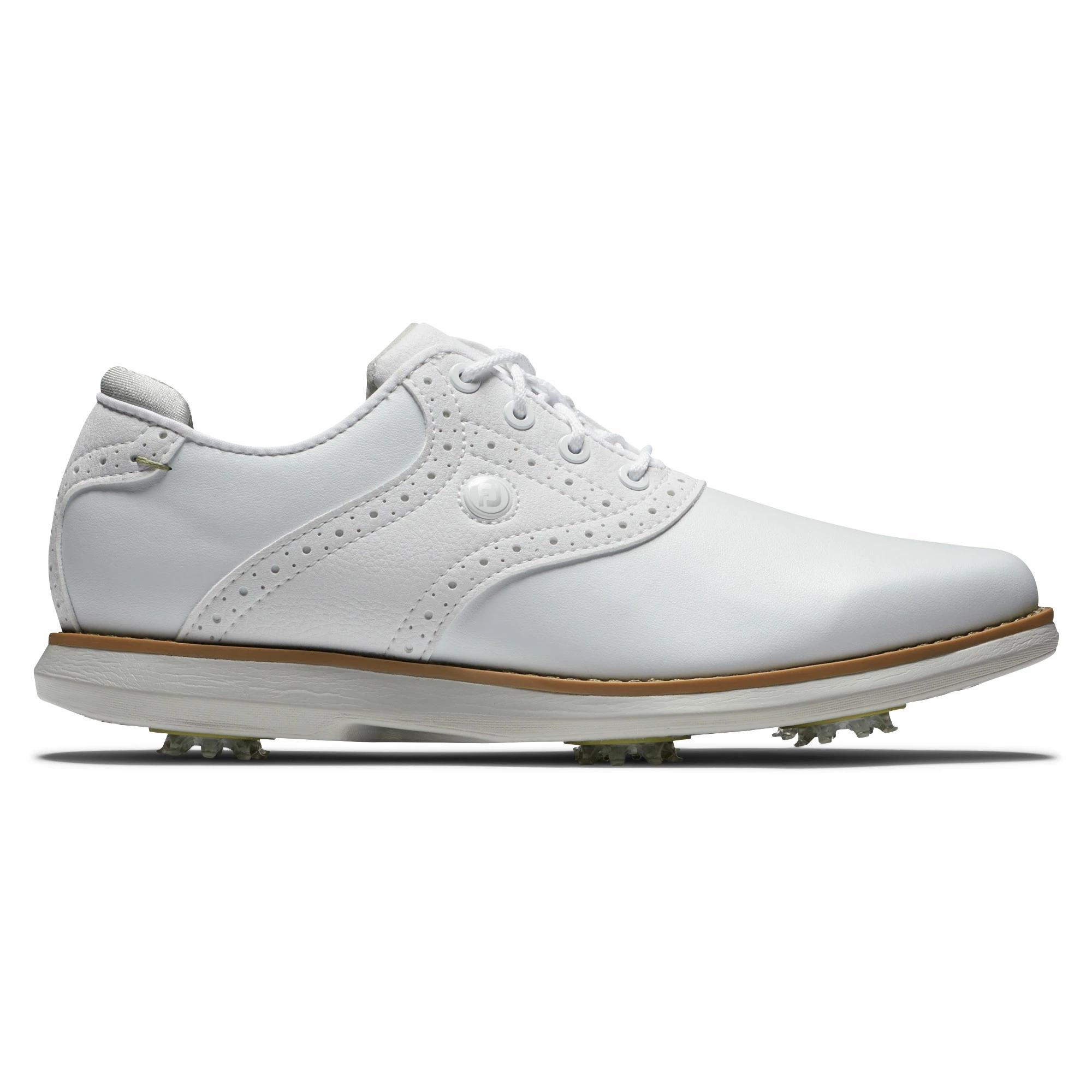 FootJoy&Traditions Ladies Golf Shoes – White The&Traditions Ladies Golf Shoes in White by FootJoy offer lightweight comfort combined with extra support and cushioing. An ideal Golf Shoe to get out onto the course in. Features Full grain leather upper Foam midsole Moulded FitBed for underfoot upport and cushioning Pulsar LP cleats by Softspikes