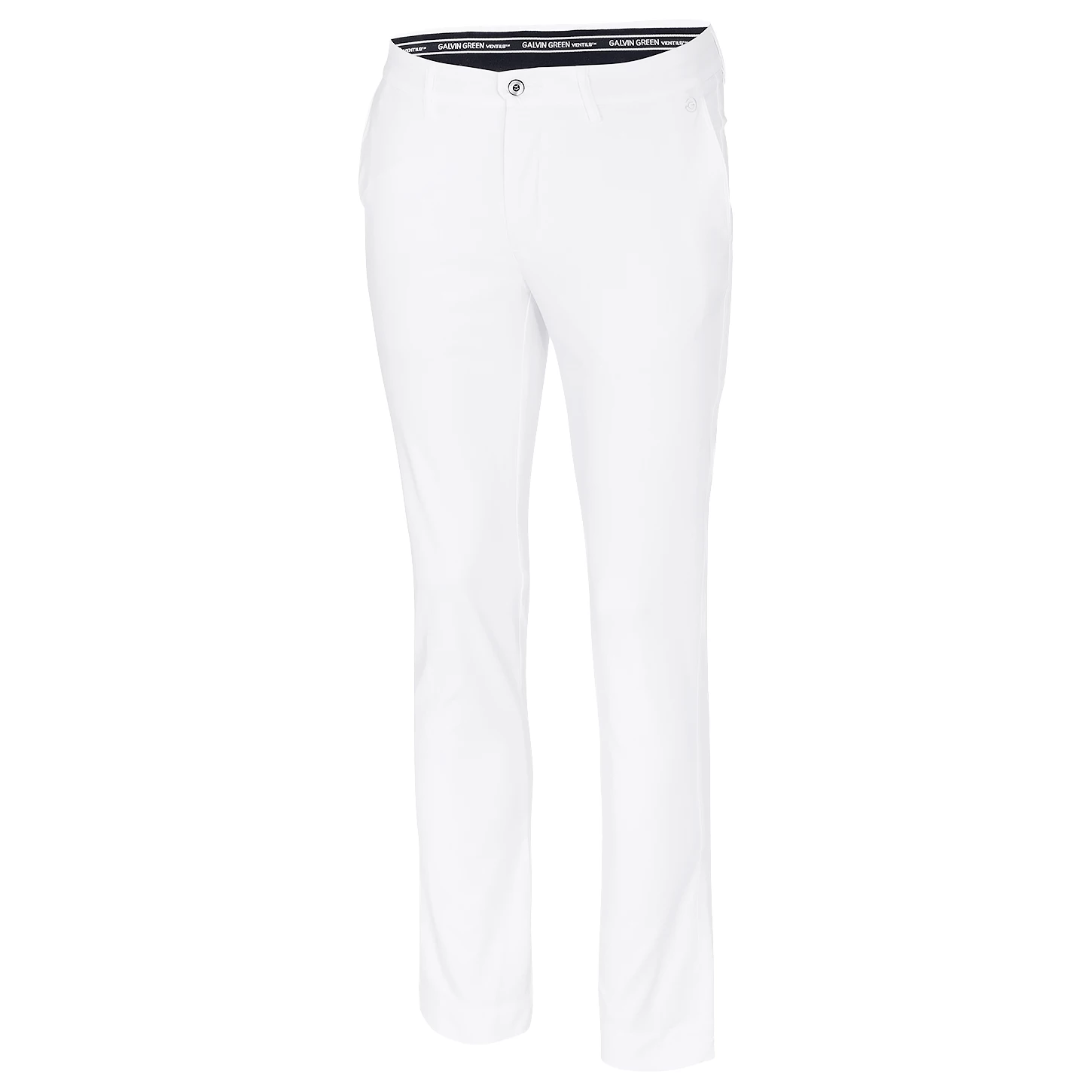 Galvin Green Noah VENTIL8+ Golf Trousers – &White To provide golfers with an incredibly comfortable pair of golf trousers that not only feel great to wear during a full day of golf but also provides incredible moisture-wicking technology to keep you cool and comfortable while you play, Galvin Green has created the Noah VENTIL8+ Golf Trousers. Galvin Green has used VENTIL8PLUS fabric when constructing these golf trousers to allow players to experience the incredible breathability and ventilation it provides while on the golf course, which is perfect during a round of golf in the summer sun. This material also provides UV protection of factor 20+ so that your skin is also protected from the suns rays.& Paired with the breathable properties that these golf trousers provide, the VENTIL8PLUS fabric used by Galvin Green also provides incredibly quick-dry and moisture-wicking performance too to ensure that golfers are always cool and comfortable while they play. The moisture-wicking fabric works to draw sweat and excess moisture away from the skin and spread it over a larger surface area so that it is able to evaporate faster and keep players cool on the course.& So that when you are out on the golf course you are still able to create fantastic golf swings without any risk of restriction Galvin Green has used a super soft and comfortable fabric. This fabric has been constructed to offer the optimal amount of stretch and freedom of movement so that golfers can create perfect form while swinging a golf club to create sensational performances. Features Extremely breathable Quickdry UV protection 20+ Mechanical stretch BLUESIGN® approved fabric Soft and comfortable Front pockets Back pockets VENTIL8™ PLUS, 100% polyester.