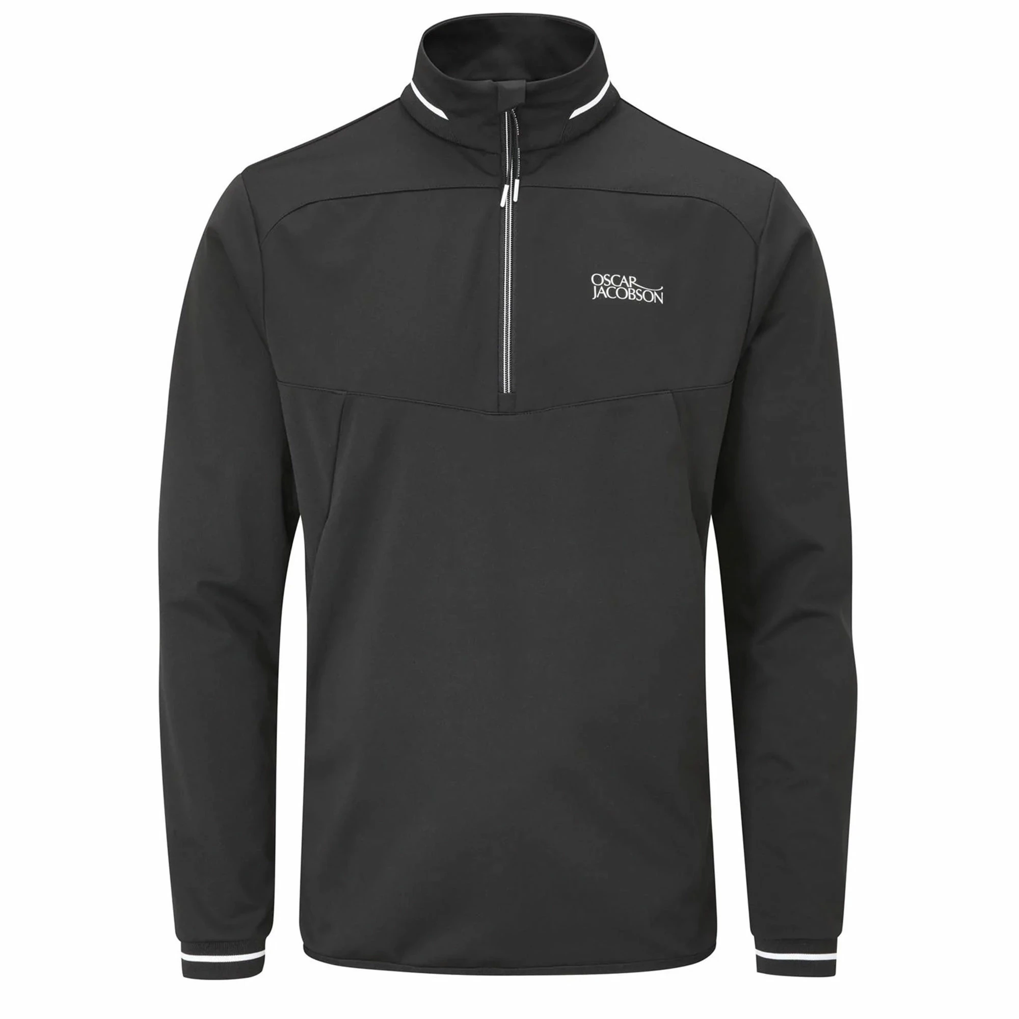 Oscar Jacobson Rolfe Tour 1/4 Zip Golf Jacket The Rolfe Tour 1/4 Zip Golf Jacket has been created by Oscar Jacobson to ensure that golfers can go out onto any golf course year round in a warm and comfortable thermal jacket that offers great protection in windy weather conditions. This mens golf thermal has been designed using a thermal fabric that works by retaining the body heat that is created while playing a full round of golf to keep you at a comfortable temperature during the winter months. However, to make sure there is little risk of overheating while you play, a ventilated back panel has been added to allow excess heat to escape.& Oscar Jacobson has also used wind resistant material fabrics when creating this lightweight golf jacket to make sure you are protected from cold winds out on the golf course. For further protection, a knitted outer collar has been included as well as ribbed cuffs. Features 100% Polyester Wind resistant & thermal fabric Zip guard Knitted outer collar Easy access body pockets Contrast detail zip pullers Ventilated back panel Ribbed cuffs &