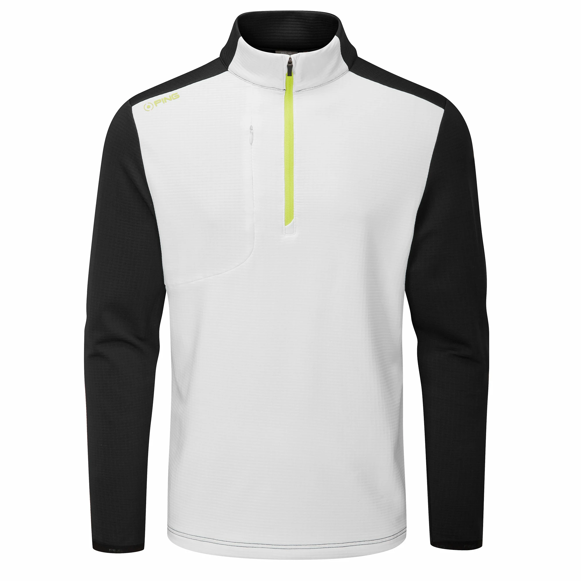 Ping Farrell Half Zip Golf Sweater The Ping Farrell Half Zip Golf Sweat has been created by Ping to offer golfers a jumper that is not only incredible at keeping you warm during cold days on the golf course but has a water resistant finish to ensure you stay dry in sudden downpours of rain. Ping has designed this golf jumper during a double knit fleece construction that has been paired with Sensor Warm Technology to provide increased thermal insulation so that you can experience a sweater that provides maximum warmth during colder days on the golf course.& While this golf jumper provides amazing comfort and warmth, it also allows for brilliant movement and flexibility thanks to the materials that it has been made from. Using a combination of recycled polyester and elastane provides you with a sweater that allows for an increased range of movement so that smoother golf swings can be created while still being incredibly comfortable and warm.& This golf jumper has been coated in a water-resistant finish so that even during a sudden downpour of rain on the golf course you will still be warm and dry ready to continue your round of golf.& Features Double Knit Fleece For Maximum Warmth Water Resistant Finish 1/2 Zip Neck Opening Ping Branding On Right Shoulder Sensor Warm Technology To Keep You Warm Regular Fit Garment 88% Recycled Polyester, 12% Elastane