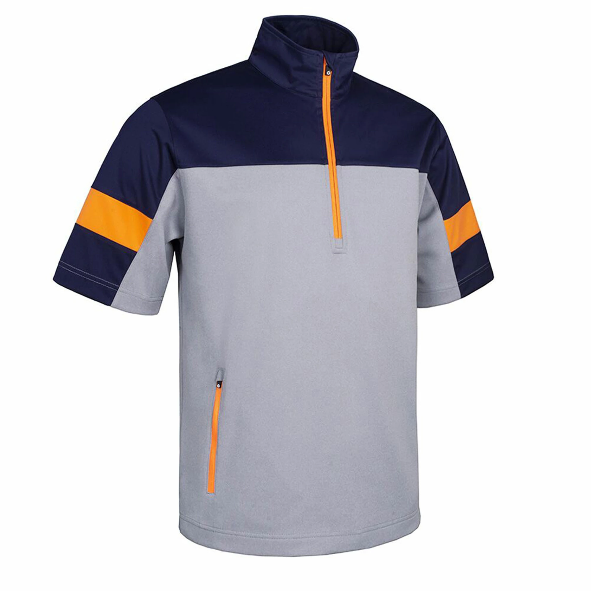 Sunderland Cortina Half Sleeve Zip Windtop – Silver/Navy/Lava The Sunderland Cortina Half Sleeve Zip Wintop provides you with a lightweight and sporty windshirt that minimises restriction while still providing great protection from the elements.& The use of 100% performance polyester has allowed for this wind shirt to be made soft to the touch while also allowing for incredible stretch performance so that on every golf swing you are able to have a great range of movement for much more fluid golf swings. This golf shirt also uses brilliant windproof protection while also receiving Teflon DWR ( Durable Water Repellent) treatment so that water, dirt and stains can easily be removed from this shirt.& Zipped side pockets have also been added to this shirt to ensure that you can easily access your personal belongings, but also make sure they are safe and secure when not being used.& Features 100% performance polyester Stretch fabric with durable water repellent finish Low profile ‘S’ branded front zip with chin guard Side pockets with zips. Draw cord adjuster at hem Contrast Sunderland of Scotland embroidery above left back hem. Contrast Sunderland S embroidery on back neck