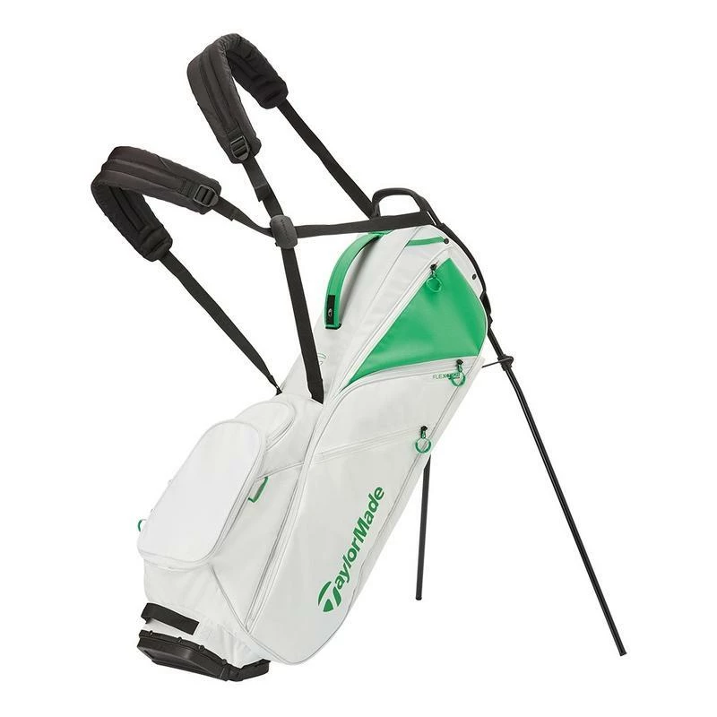 TaylorMade FlexTech Lite Golf Stand Bag 2022 The TaylorMade FlexTech Lite Golf Stand Bag provides golfers with a super-lightweight golf bag that is incredibly easy to walk a golf course with while still providing plenty of storage and golf club organisation.& Featured in the design of this stand bag is a 4-way top that uses full-length dividers so that the shafts of your golf clubs are protected from knocking into each other when walking the golf course. This system helps to avoid any damage occurring to your golf clubs while also allowing for great organisation for quicker and easier access to the golf club you need in pressure situations.& Constructed using a super-lightweight design this golf bag is very easy to carry around the golf course without feeling sore during a day of golf. It has been made even easier to carry this bag by using a self adjusting strap system that provides self adjusting stability as you walk for a much more comfortable feel, while a moulded EVA hip pad has also been added to provide additional comfort while carrying this golf bag. To ensure that golfers have a golf bag that provides enough stability for golf clubs to be stored in, TaylorMade has used FlexTech stand system that is easy to use with fast and smooth release which has been paired with a collapsible base system that provides greater stability as well as avoiding crowding of golf clubs in the bag. Features 4 way top with internal boxed dividers Full length Dividers Self adjusting strap system – *Strap Slider System allows the bag to stay stable while carrying Rangefinder Capsule, Secure and no-zip – *Easily accessible while walking FlexTech stand system – *The proprietary smooth release, collapsible base system ensures no club crowding Weight of 2.1kg 8 pockets including – Seam sealed valuables pocket – With micro suede lining – Anti-split stand system – Full length dividers – Full size side pockets – Light weight construction – Single stay construction – Non-invasive water bottle pocket