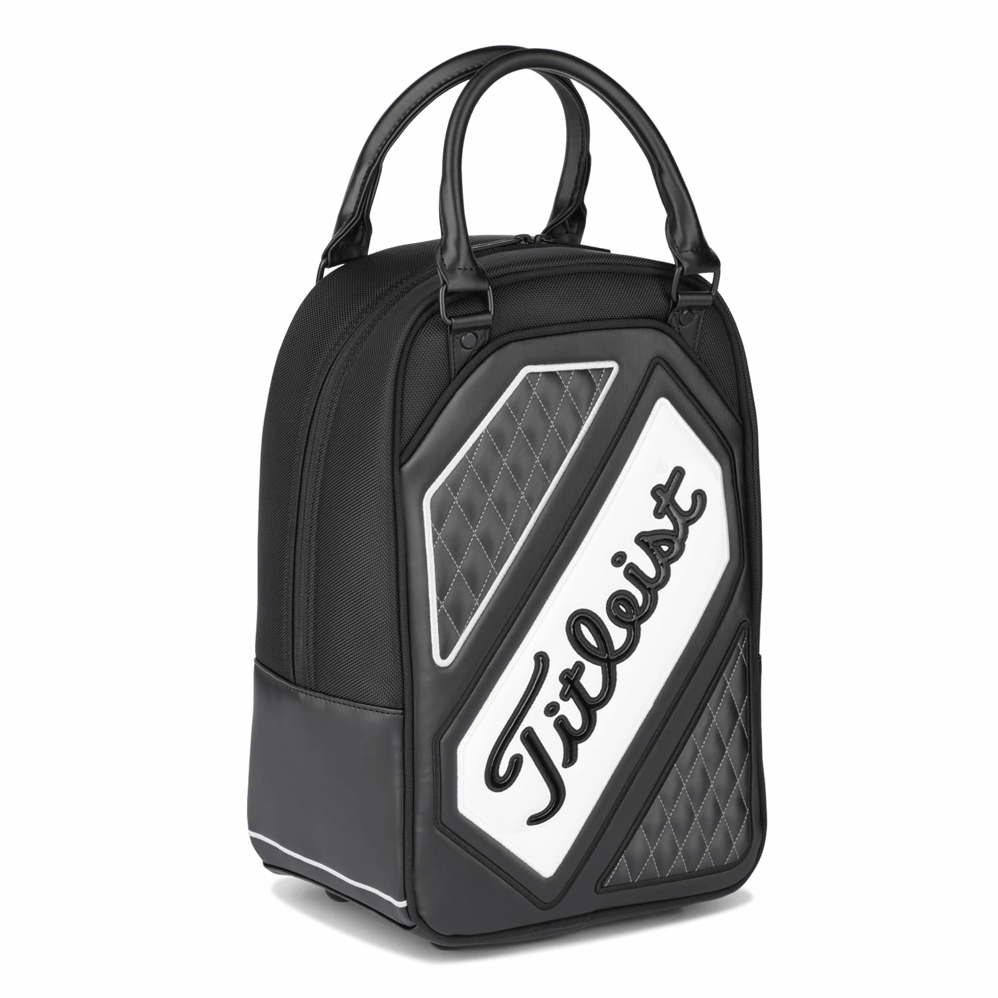 Titleist Tour Series Practice Golf Ball Bag The Titleist Tour Series Practice Golf Ball Bag has been created to provide golfers with a golf ball bag that makes you look and feel like a professional while at the driving range.& Constructed with a textured vinyl design that has been engineered to be able to withstand all weather conditions so that if you decide to go to the driving range in wetter conditions, this golf ball bag is perfect to bring along.& This bag features four plastic feet on the bottom to avoid being placed in wet or dirty surfaces, while also providing a stable base for the golf bag to sit on. Two durable carry handles have been added to the top to allow for easy movement and transport to and from the golf course. Features Large zip opening for easy access Two durable carry handles Four plastic feet on the bottom of the bag for stability Textured vinyl construction designed to withstand all weather conditions Stylish design with Titleist branding &