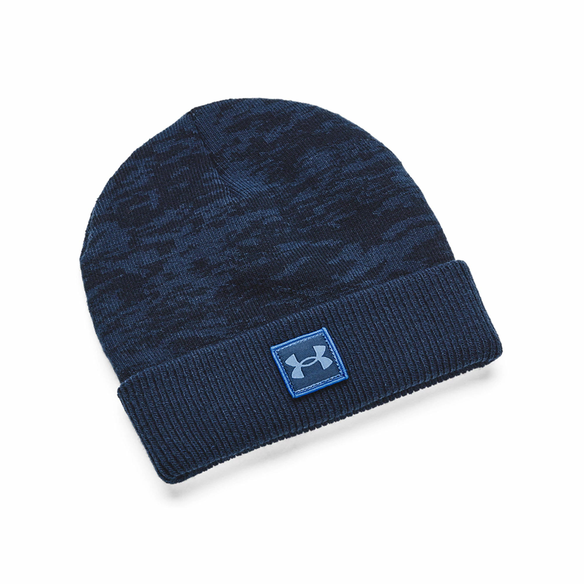 Under Armour&Boys’ Graphic Knit Golf Beanie The Boys’ Graphic Knit Golf Beanie is built with super soft acrylic knit, keeping you comfortable all day long. It also wicks sweat to ensure your head is warm and dry.& Features Soft knit fabric with all-over jacquard print delivers all-day comfort & warmth Double-layer ribbed cuff Woven patch logo Traditional cuff beanie fit